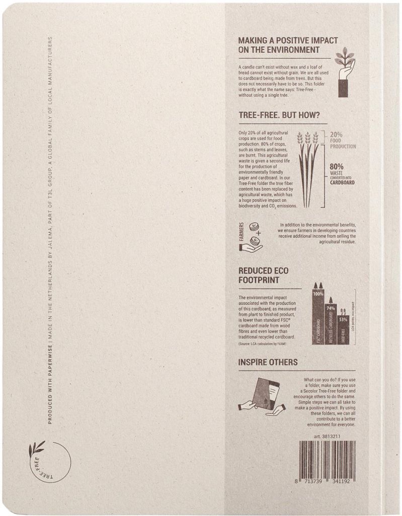- De Secolor Tree-Free mappenlijn is gemaakt van karton dat volledig gemaakt is van landbouwafval