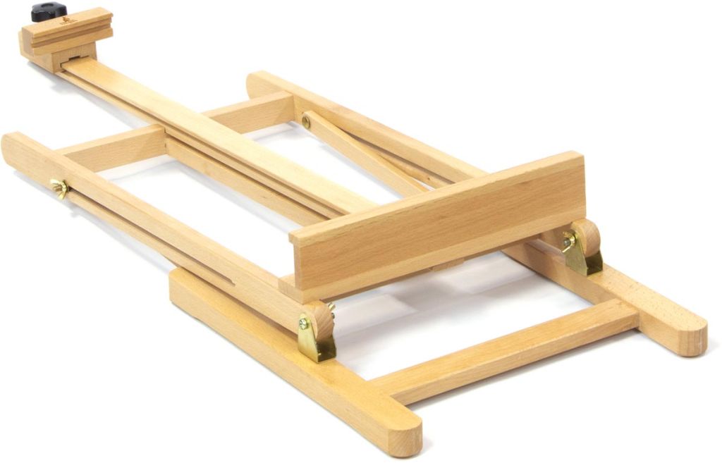 - Uit vurenhout Afgewerkt met lak op waterbasis ter bescherming Bovenzijde verstelbaar voor canvas tot 67 cm Onderzijde voorzien van opzetrand Traploos in hoogte en hoek verstelbaar Verstelbaar tot max.113 cm Ft 34 x 37 x 80 cm