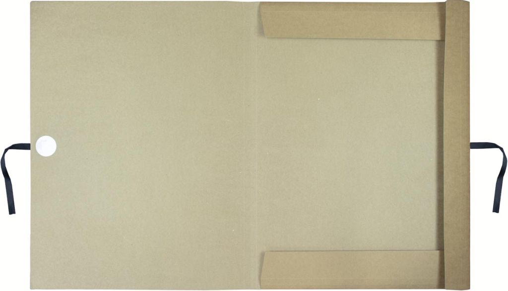 - Uit bruin karton van 500 g/m² Met linten en 3 kleppen Met gerilde rug en zijkanten voor dikke pakken papier ft 704 x 504 x 4 mm, voor ft 50 x 70 cm