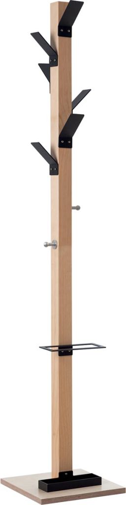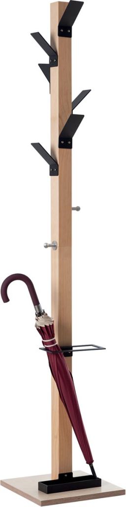 - 6 haken uit sterk polystyreen 2 haken in chroom (voor handtassen en andere tassen) Met paraplustandaard die tot 6 paraplu's kan dragen Inclusief wateropvangbak die makkelijk gereinigd kan worden Buis uit massief gelakt hout, dwarsdoorsnede 60 x 60 mm Basis uit multiplex, dwarsdoorsnede 35 x 35 cm, dikte: 20 mm, zorgt voor perfecte stabiliteit Makkelijk te monteren Hoogte: 178 cm zwart
