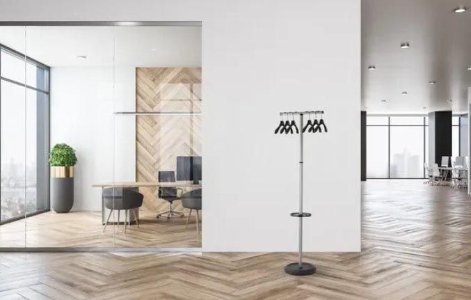 Kapstok vloerstandaard, met 6 zwarte kledinghangers
