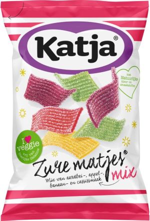 Katja Zure Matjes snoep, mix van aardbei-, appel-, banaan- en cassissmaak, zak van 250 g