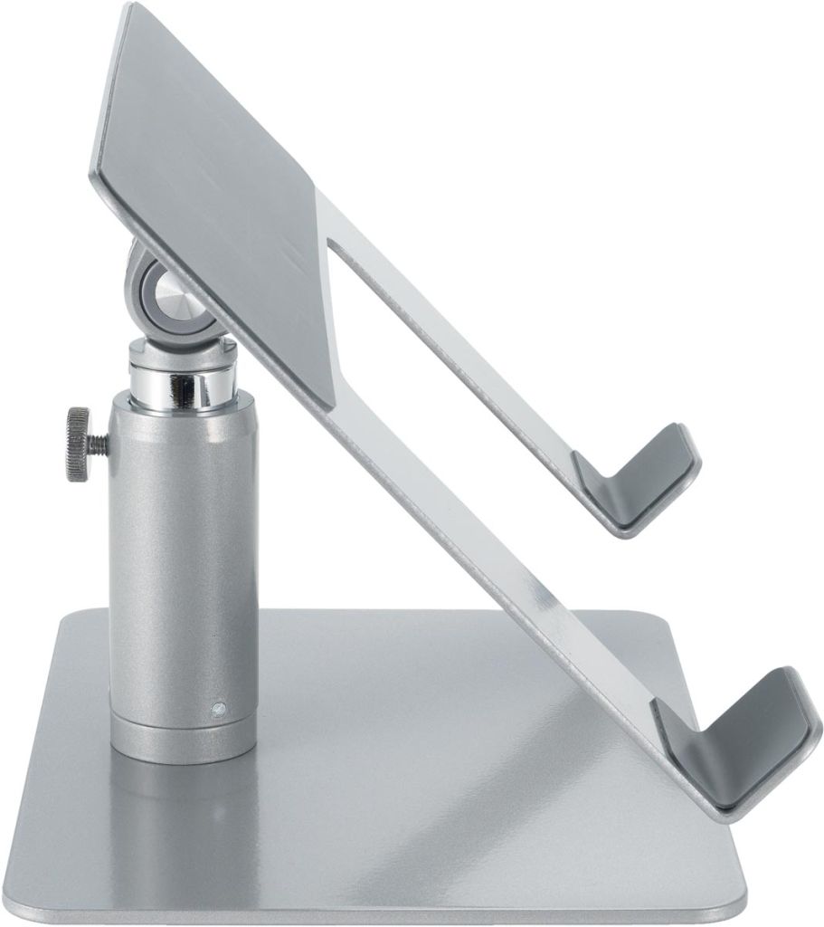 - Hoogte (151 200 mm) en hoek (0° - 45°) zijn traploos instelbaar Voor laptops tot 16 inch Optimale luchttoevoer naar laptop dankzij open ventilatieontwerp Met siliconen antislipvoetjes Uit staal en aluminium Kleur: zilver