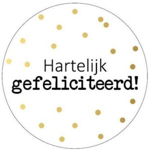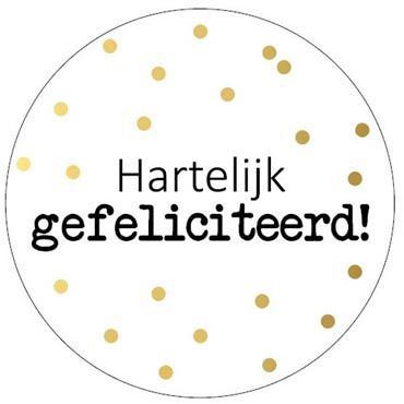 - Met permanente lijm Dispenserdoosje van 250 stuks opdruk: "Hartelijk gefeliciteerd + stippen", voorzien van goudfolie, diameter: 40 mm