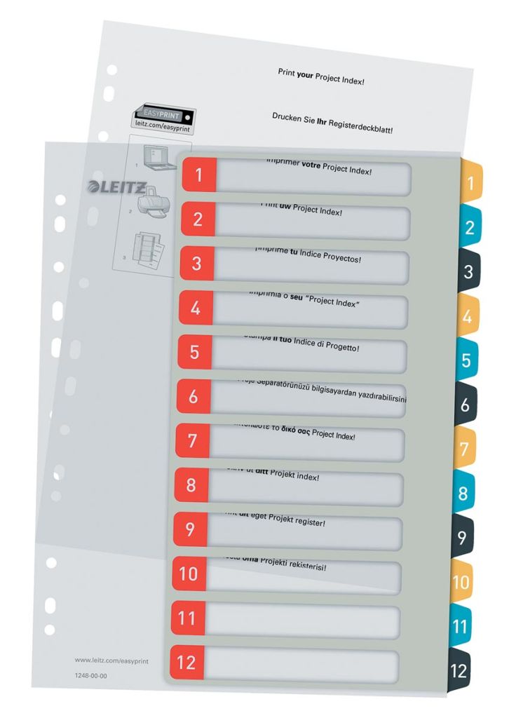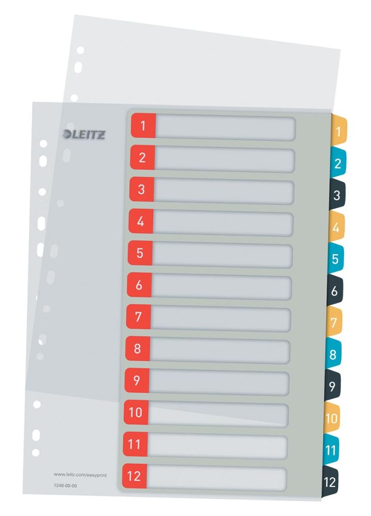 - Ft A4 maxi Uit gekleurde PP van 300 micron in Cosy kleuren Indexvel personaliseerbaar via www.leitz.com/easyprint 11-gaatsperforatie set 1-12