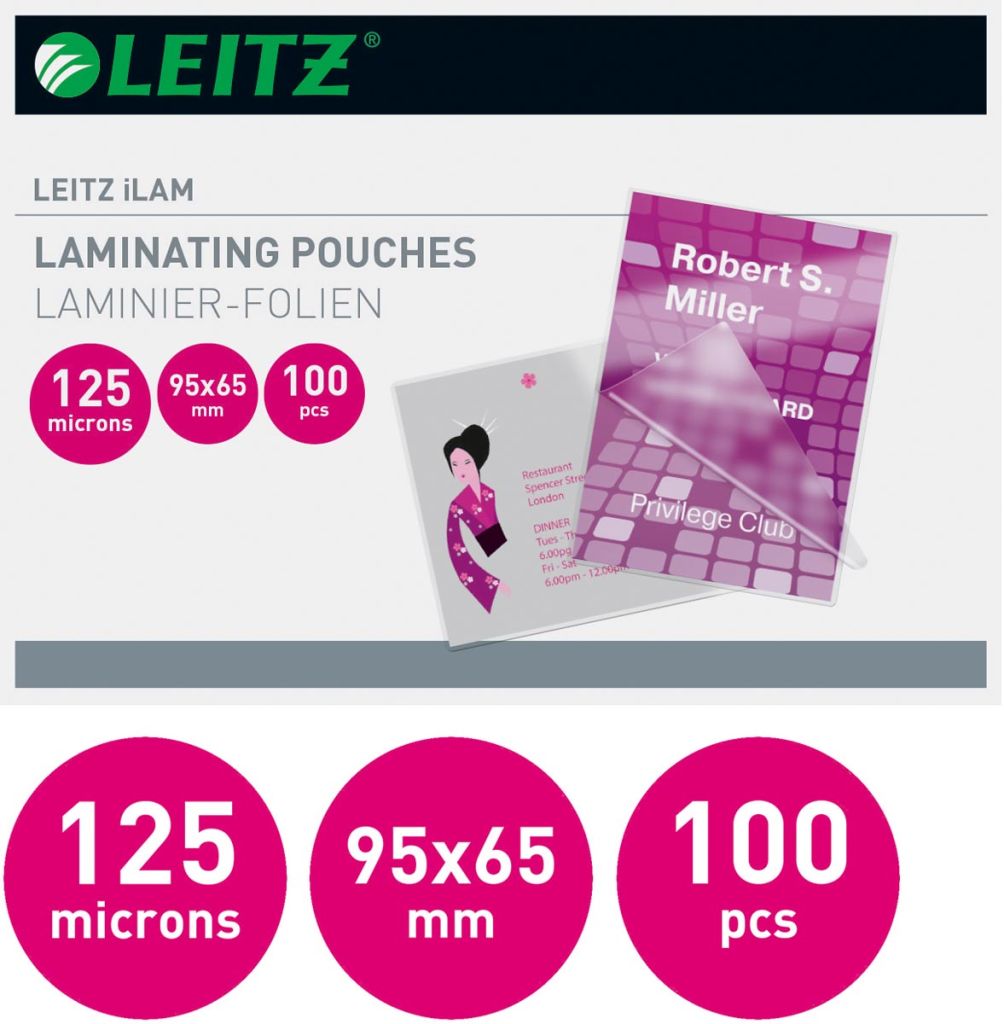 Leitz Eva lamineerhoes ft 65 x 95 mm, 250 micron (2 x 125 micron), pak van 100 stuks