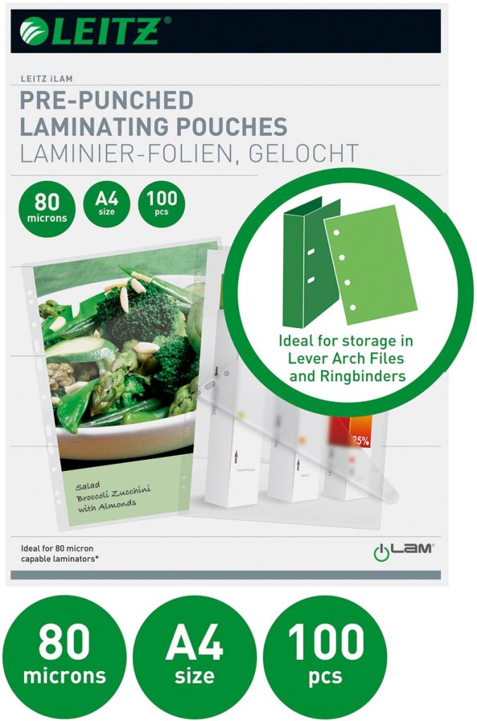 Leitz iLAM lamineerhoes ft A4, 160 micron (2 x 80 micron), geperforeerd, pak van 100 stuks