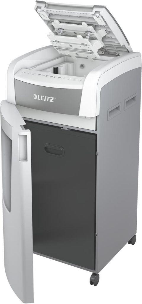 - Capaciteit: 600 blad Werkduur van 240 minuten Vernietigt nietjes paperclips en kredietkaarten Beveiliging tegen vastlopen PIN slot Capaciteit opvangbak: 110 l Op wieltjes Ft 57 x 51 x 96 cm Kleur: grijs Cashback actie via www.leitzcashbackeurope.com