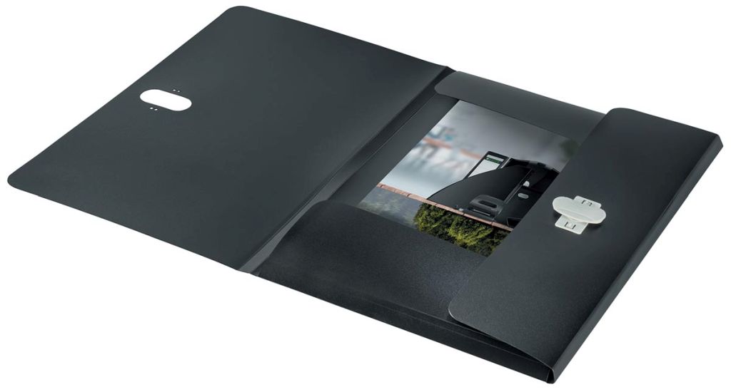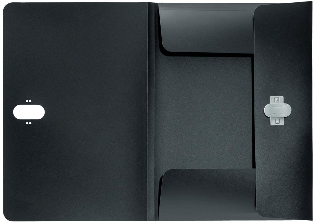 - Voor ft A4 (23,5 x 32 cm) Uit PP Met 3 kleppen Met draaiknop Capaciteit: 150 vel Certificaat: Blauwe Engel Gerecycleerd materiaal: 80 % zwart