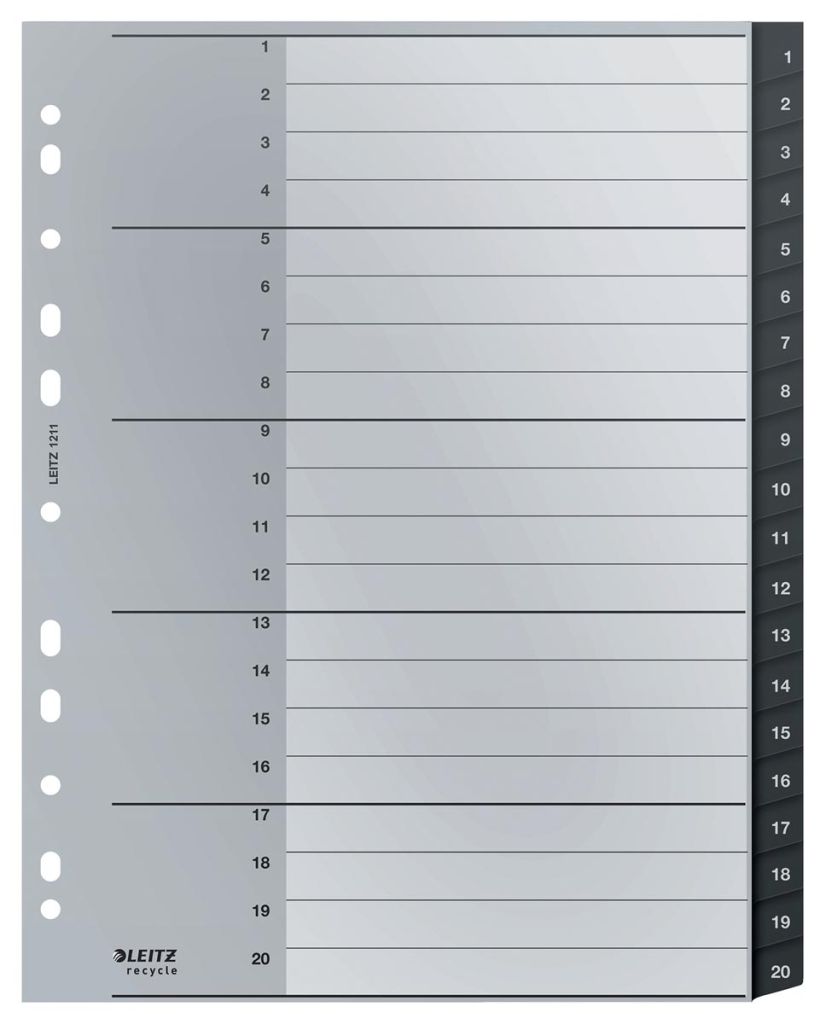 Leitz Recycle tabbladen, ft A4, 11-gaatsperforatie, PP, zwart, 1-20