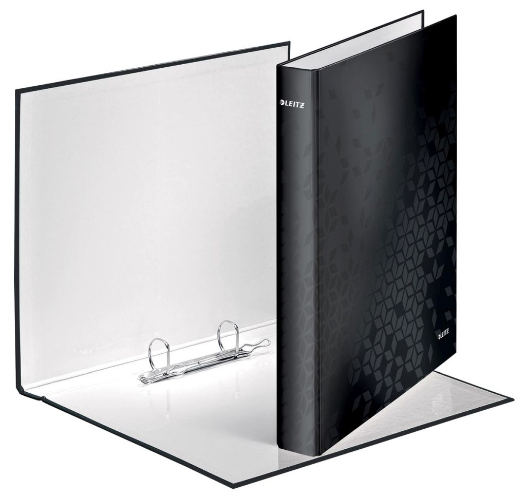 - Voor ft A4 (27,5 x 31,8 cm) Rug van 4 cm Uit karton Met een nieuw geometrisch design Met D-ringen van 25 mm Met draadspanner Capaciteit: 250 vel FSC Mix gecertificeerd met 2 ringen, zwart