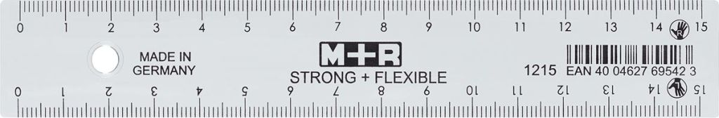 M+R Strong & Flexibel lat, met schaalverdeling voor recht- en linkshandigen, 15 cm, transparant