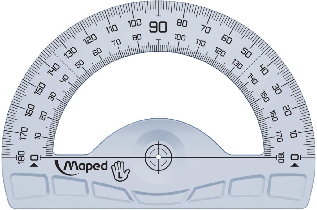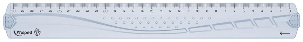 - 3-delige tekenset voor linkshandigen: 1 lat van 30 cm, 1 winkelhaak 45°/21 cm en 1 gradenboog 180°/12 cm
