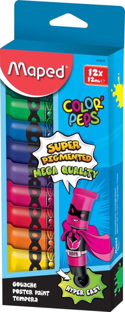 Maped Color'Peps plakkaatverf, tubes van 12 ml, ophangdoos met 12 tubes in geassorteerde kleuren