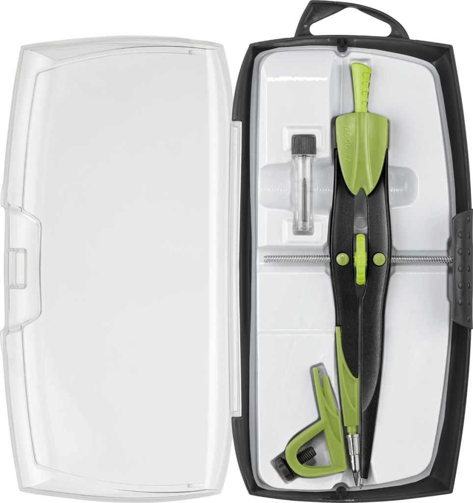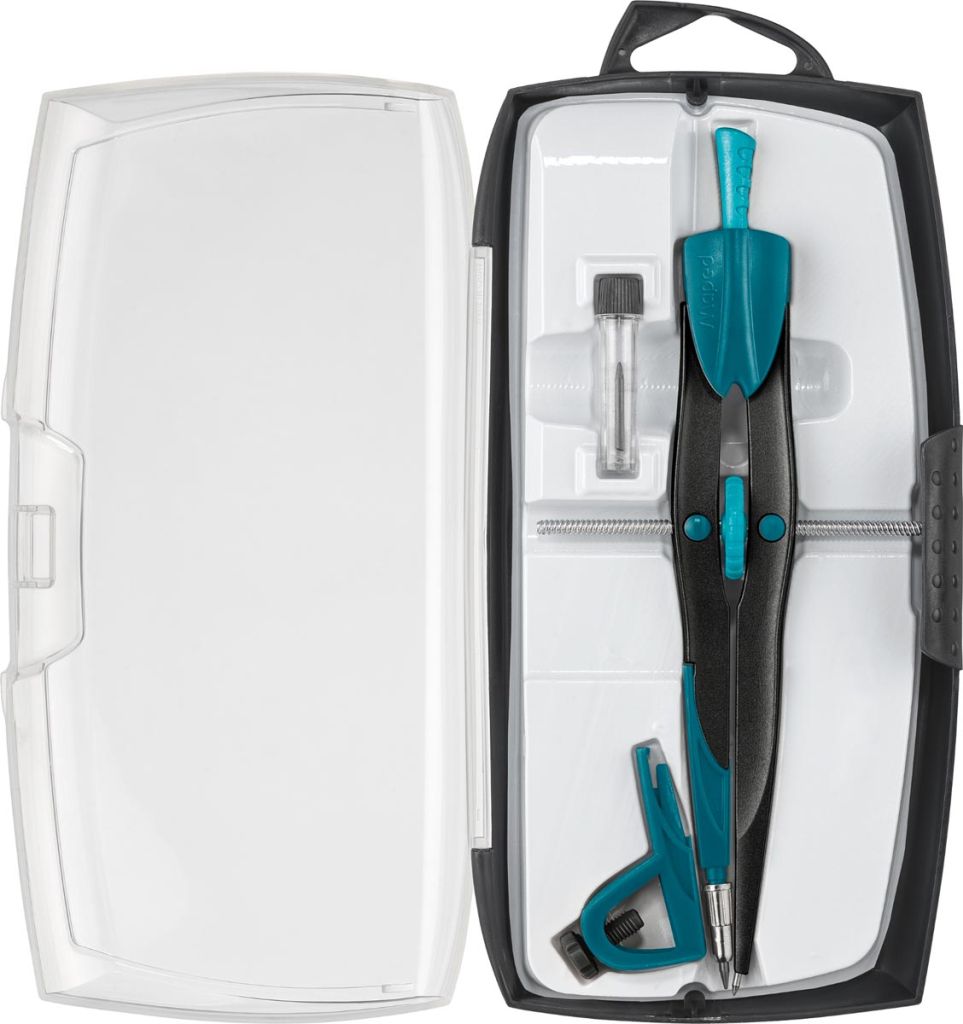 - 3-delige passerdoos: 1 verdeelpasser, 1 universeel inzetstuk en 1 kokertje potloodstiften