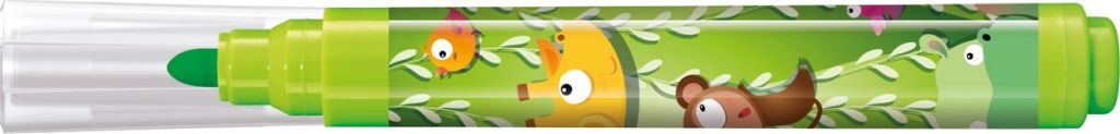 - Brede geblokkeerde punt Ronde vorm: ideaal voor het inkleuren van grote kleurvlakken Ergonomisch Ultra uitwasbare inkt Geventileerde dop Geassorteerde kleuren Kartonnen ophangetui van 12 stuks