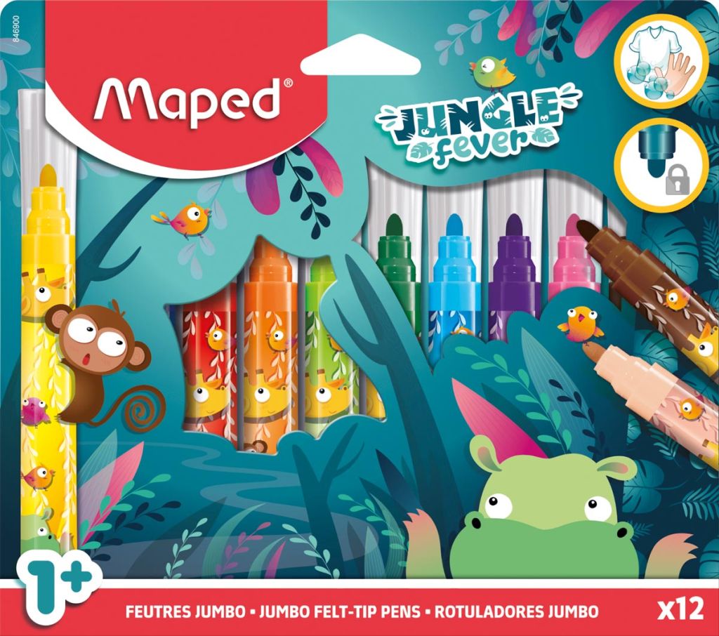 Maped viltstift Jungle Fever Jumbo, etui van 12 stuks, assorti