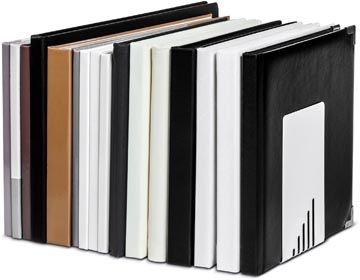 - Van metaal, gepoedercoat plaatstaal met schuin aflopende, glijdende, einddelen, hierdoor schuift de boekensteun makkelijker onder de boeken