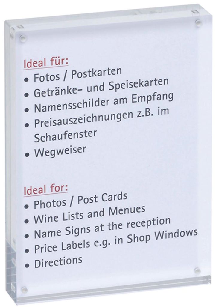 - Uit hoogwaardig acryl Past prima in elke werkomgeving Voor menukaarten, foto's, tafelaanduidingen, folders, etc