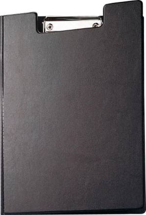 - Karton overtrokken met folie Insteekvak aan binnenkant van voorblad Metalen vlakke klem, zilverkleurig Met ophangoog Met pennenlus Klemwijdte: 0,8 cm voor ft A4, staand, zwart