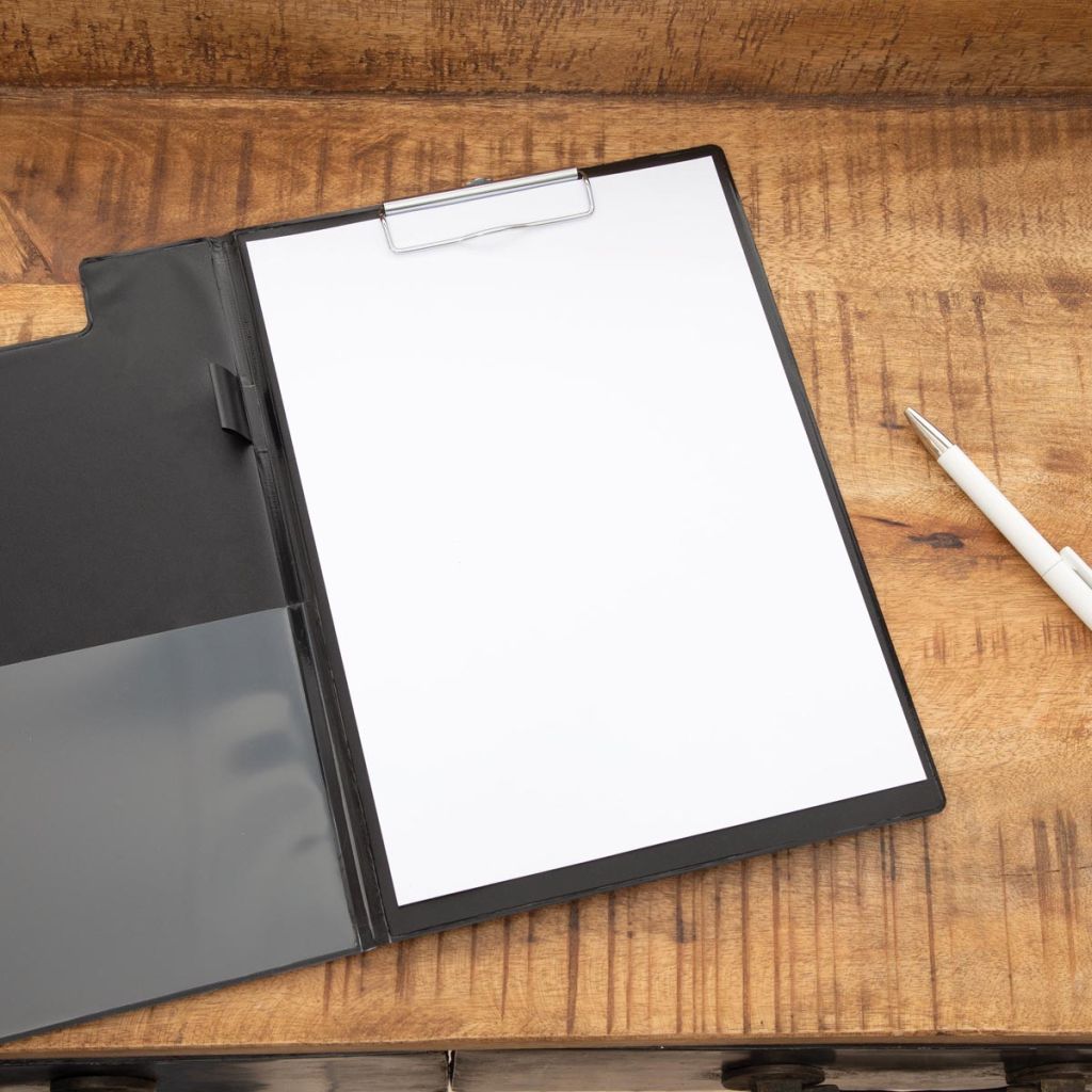 - Voor ft A4, staand Map van karton met PP folie Met inschuifbaar ophangoog Verchroomde vlakke klem, zilverkleurig Met insteekhoes en pennenlus aan de binnenzijde Klemwijdte: 0,8 cm Plaatdikte: 0,22 cm zwart