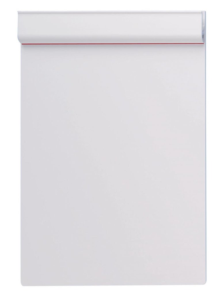 - Vlakke brede klem met rubberen strip(rood) in de onderzijde van de klem op de lange zijde om het papier goed vast te klemmen en niet zomaar kan wegglijden uit de klem