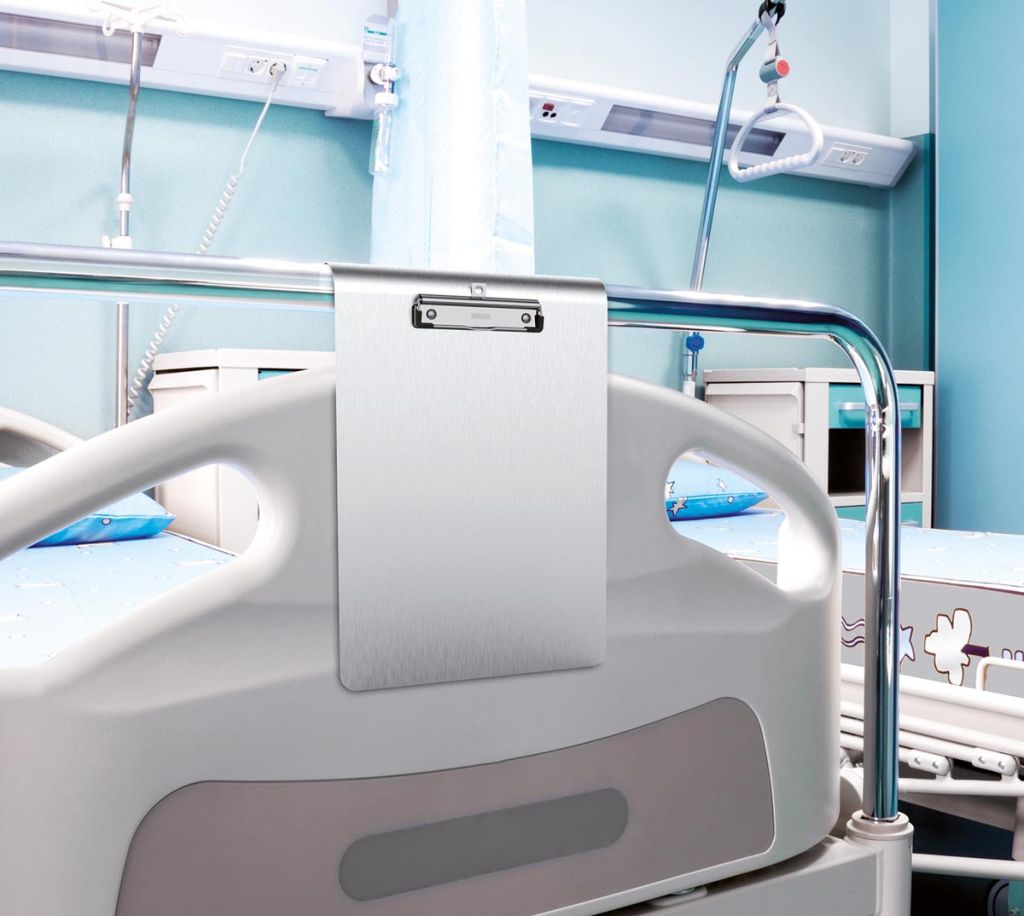 - MAULmedic aluminium klembord, met RVS papierklem, om op te hangen aan bijv