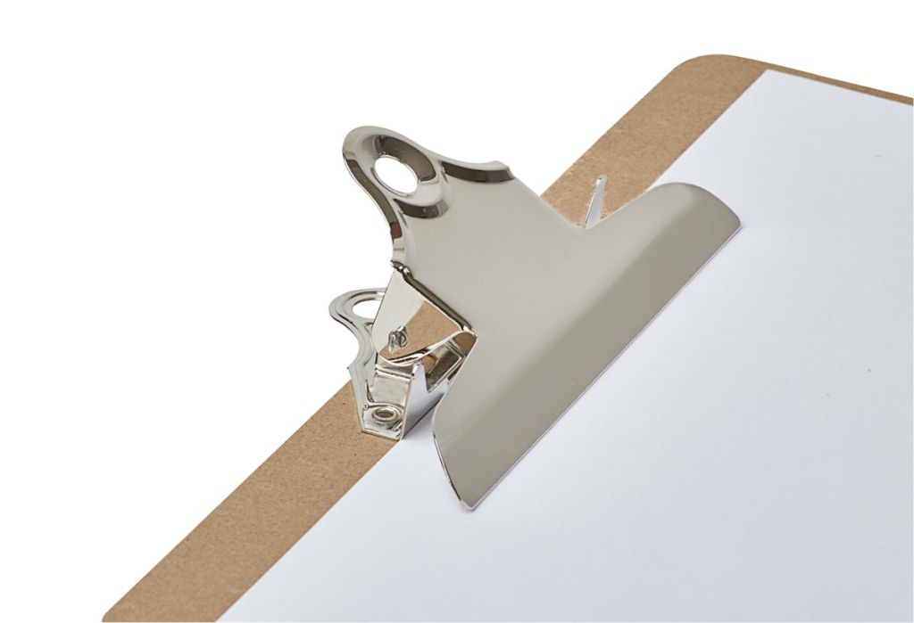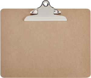- Stabiel design klembord van hardboard-hout met nostalgische klem Ideaal ook voor menu, etalage of bij de receptie Nostalgische klem van stevig staal met krachtige metaalveer Comfortabel: papieraanslag boven Opper vlakte van het klembord onbehandeld voor natuurlijke indruk Praktisch met ophangbeugel Opening van de klem: 1,5 cm Dikte van de klemplaat: 0,3 cm Recycleerbaar ft A4, liggend