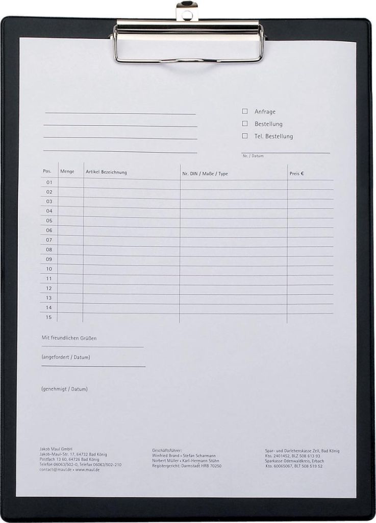 MAUL klemplaat pvc met transparante insteekstas op de achterzijde A4 staand