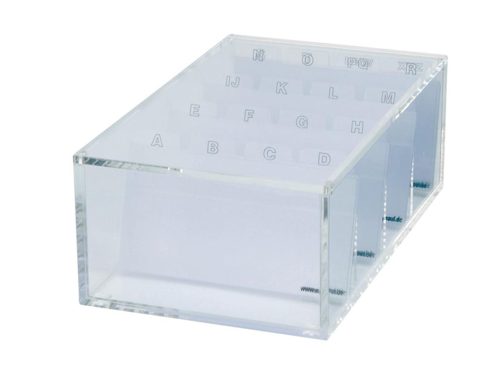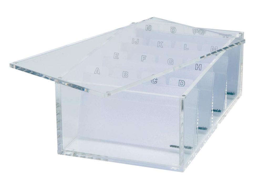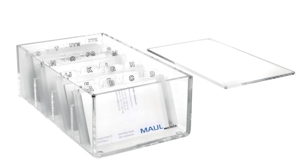 MAUL visitekaartbox acryl met deksel incl. index 11.4x19x7.2cm