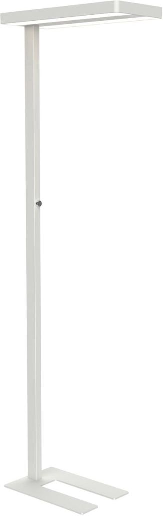 - 50 000 uur Energieklasse C Gewogen energieverbruik 68 kWh/1000h Lichtstroom 13060lumen Lichtsterkte bij 85 cm afstand 2520 lux Lampenkop van aluminium ft 28 x 61 x 4,2 cm Voet van staal ft 30 x 45 cm Hoogte lamp 196 cm wit