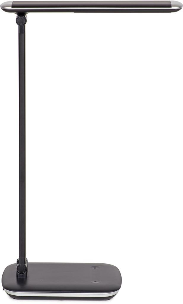 - Dimbare LED bureaulamp Met geintegreerde 5V, 500 mA USB-stekker voor het opladen van tablet's of smartphones Designlicht met dubbele arm Kleurtemperatuur traploos en verlichtingssterkte in 4 niveaus instelbaar Levensduur: 20 000 uur Lichtsterkte bij 35 cm afstand: 2060 lux Temperatuur licht: 4.000 Kelvin (neutraal wit) Uit kunststof Kop is kantelbaar en draaibaar, arm is kantelbaar Kabellengte: 1,80 m Energieklasse C (spectrum A tot G) Ft 26 x 13 x 42.5 cm