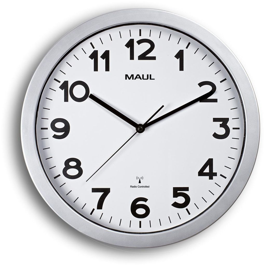 MAULstep wandklok, radiogestuurd, diameter 35 x 5 cm, kunststof kader, zilver