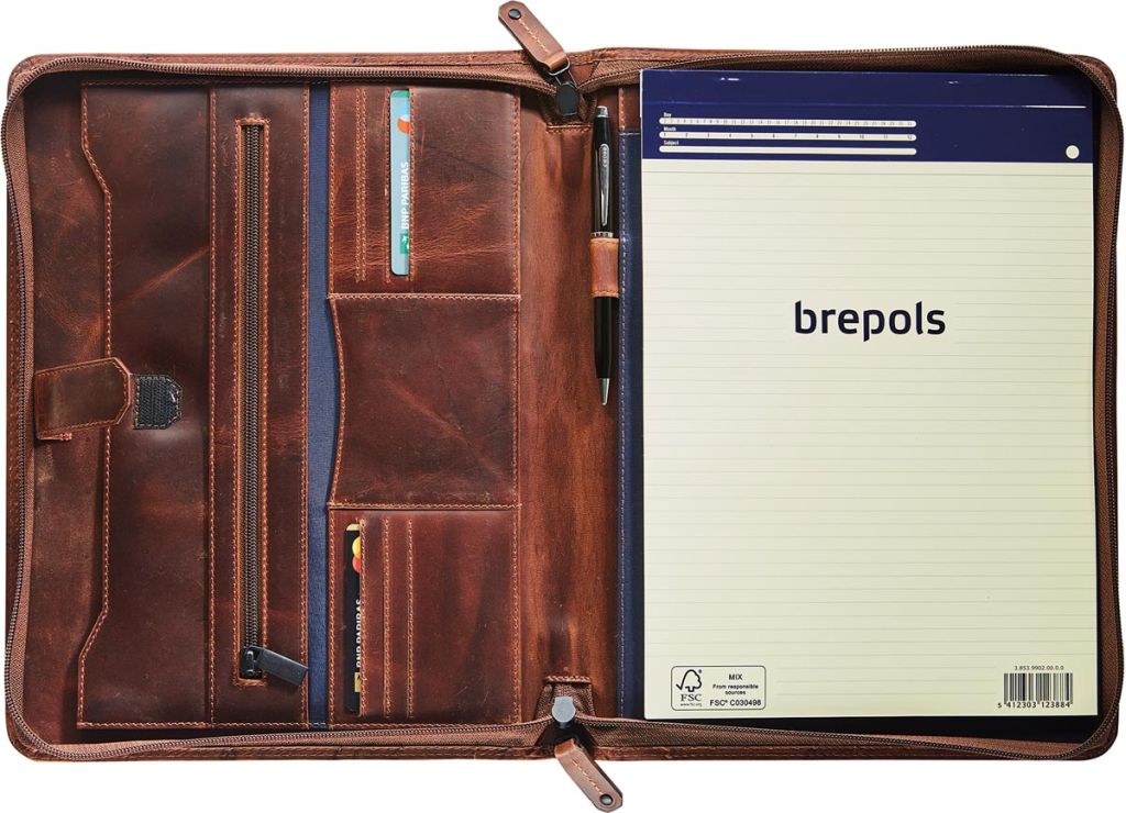 Maverick lederen schrijfmap voor ft A4, inclusief blocnote, bruin
