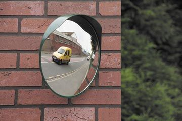 - Dodehoekspiegel: voor goed zicht achter hoeken Met regenscherm Kijkafstand: 4 tot 6 m Diameter: 30 cm