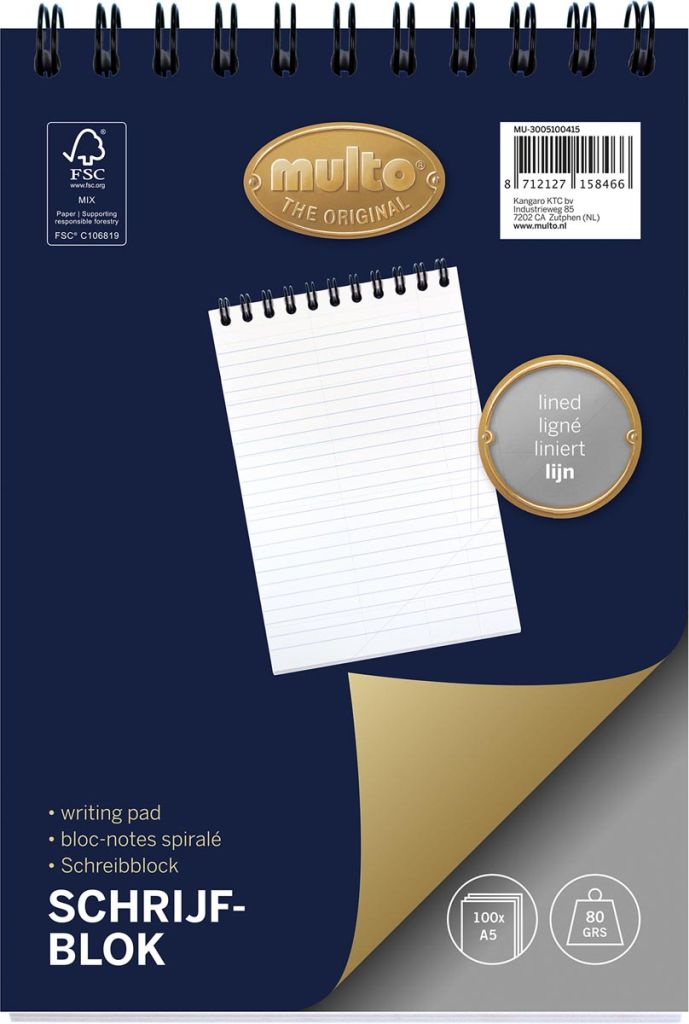 Multo kopspiraalblok, ft A5, gelijnd, 100 vel