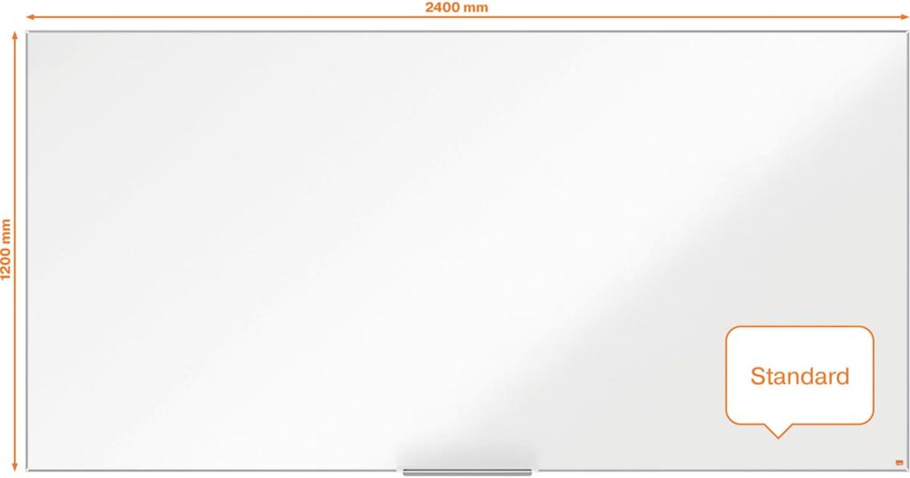 - 15 jaar garantie op het oppervlak Met modern smal en stijlvol frame Bevestigd met InvisaMount systeem, mooi weggewerkt achter het whiteboard Ruime pennengoot Met Nobo marker ft 240 x 120 cm