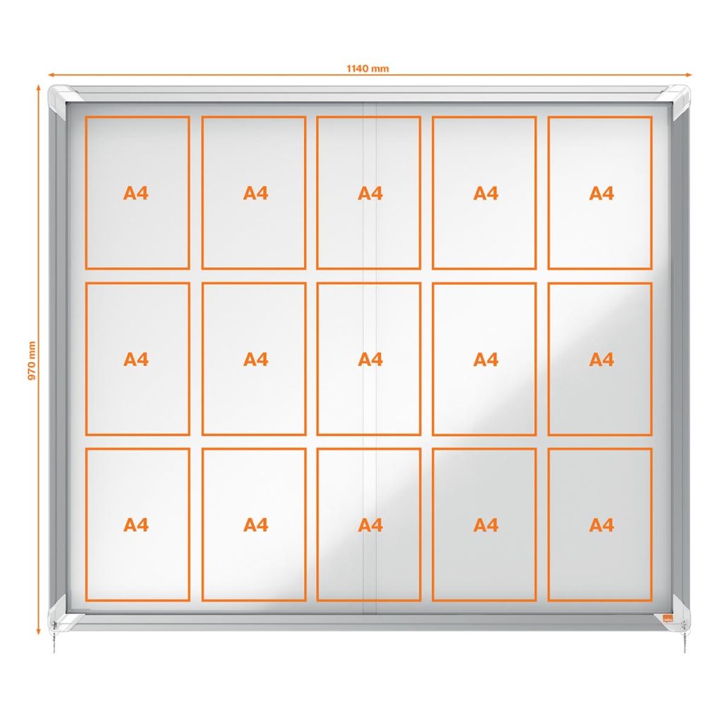 Nobo Premium Plus binnenvitrine, schuifdeuren met hoekslot, magnetisch, 15 x A4