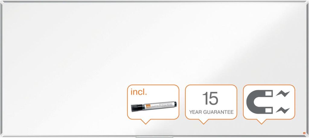 - 15 jaar garantie op het oppervlak Magnetisch oppervlak in gelakt staal Uitstekend wisbaar Met modern, stijlvol aluminium frame Bevestigd aan de wand door traditionele hoekmontage Ruime pennengoot Met Nobo marker ft 270 x 120 cm