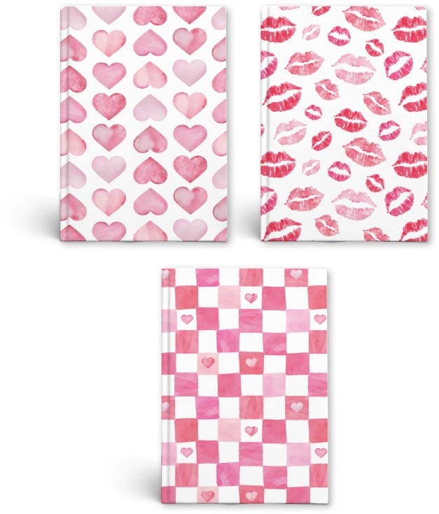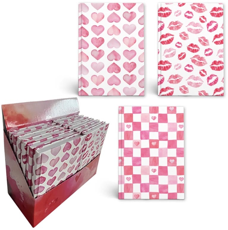 - Ft 14,8 x 21 cm (A5) Papier van 80 g/m² 160 bladzijden (80 vel) Zachte kaft Gelijnd Motieven: hartjes, lippen en ruitjes Kleur: wit-roze