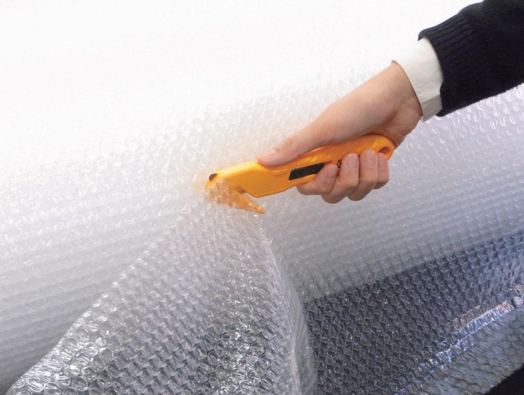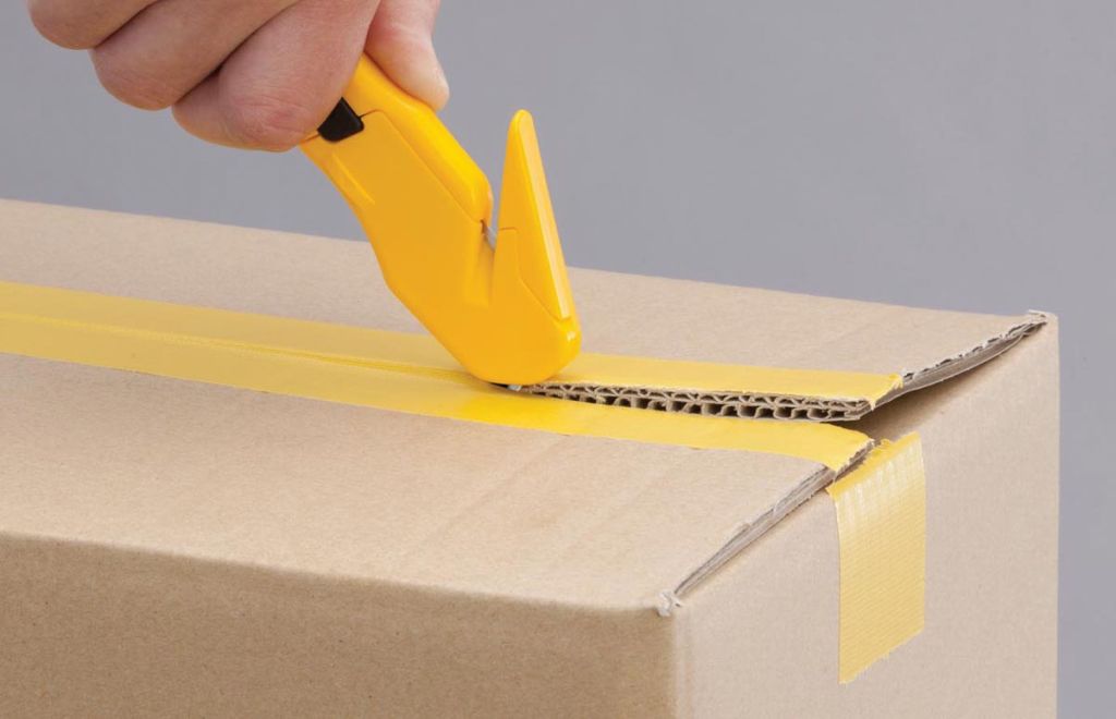 - Met een tape-mesje om verpakkingen te openen zonder risico