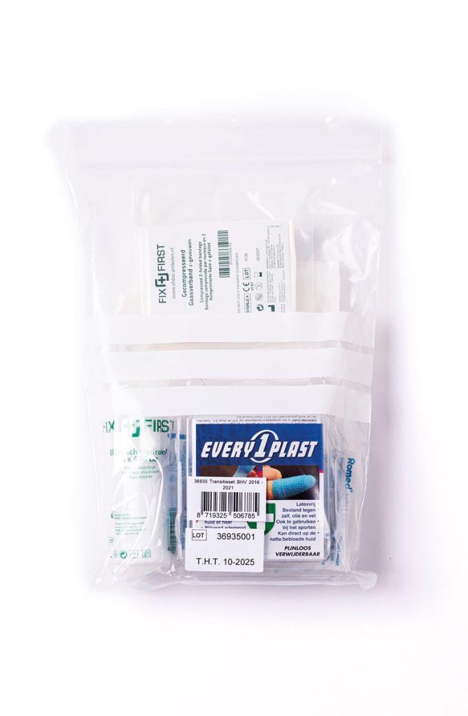 - Waardeer al uw BHV koffers op naar de nieuwe norm 2021 van Het Oranje Kruis Inhoud: - 1 x elastische zwachtel 400 x 8 cm (hydrofiel) - 1 x steriele verbanddoek 50 x 50 cm - 1 x zelfklevend windsel 2,5 cm x 4 m / vingerverband - 5 x bloedlancet / blarenprikker - 2 x eilandpleister 6 x 8 cm - 1 x gecomprimeerd gaas