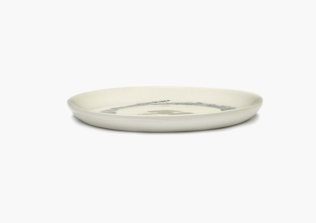Dit witte bord met blauwe organische streepjes voegt een vrolijk element toe aan elke tafelsetting. De speelse penseelstreken zijn kenmerkend voor de sfeer van Ottolenghi's Feast collectie en maken het bord extra bijzonder.