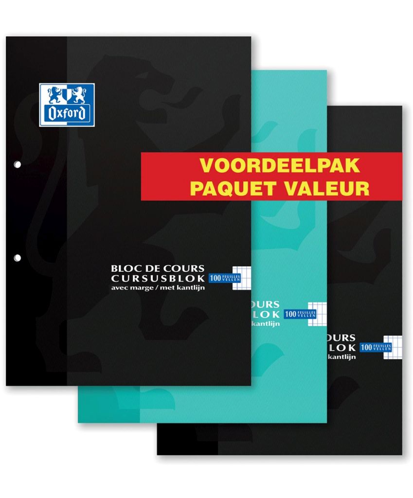 Oxford cursusblok voordeelpak van 3 stuks, geassorteerde kleuren, ft A4, 100 vel, commercieel geruit