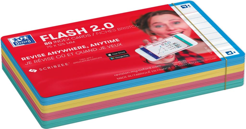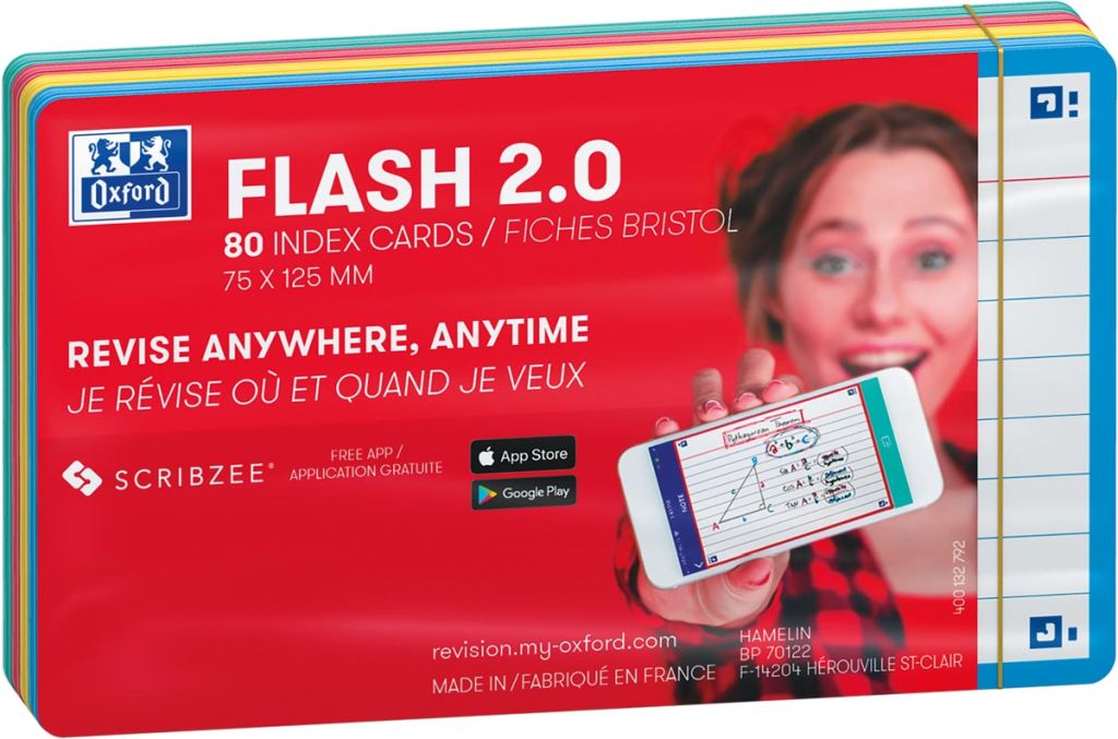 Oxford Flash 2.0 flashcard starterkit, gelijnd, A7, assorti, pak van 80 vel