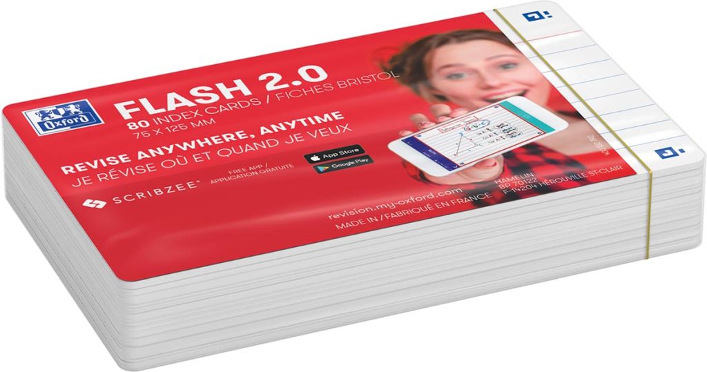 Oxford Flash 2.0 flashcard starterkit, gelijnd, A7, wit, pak van 80 vel