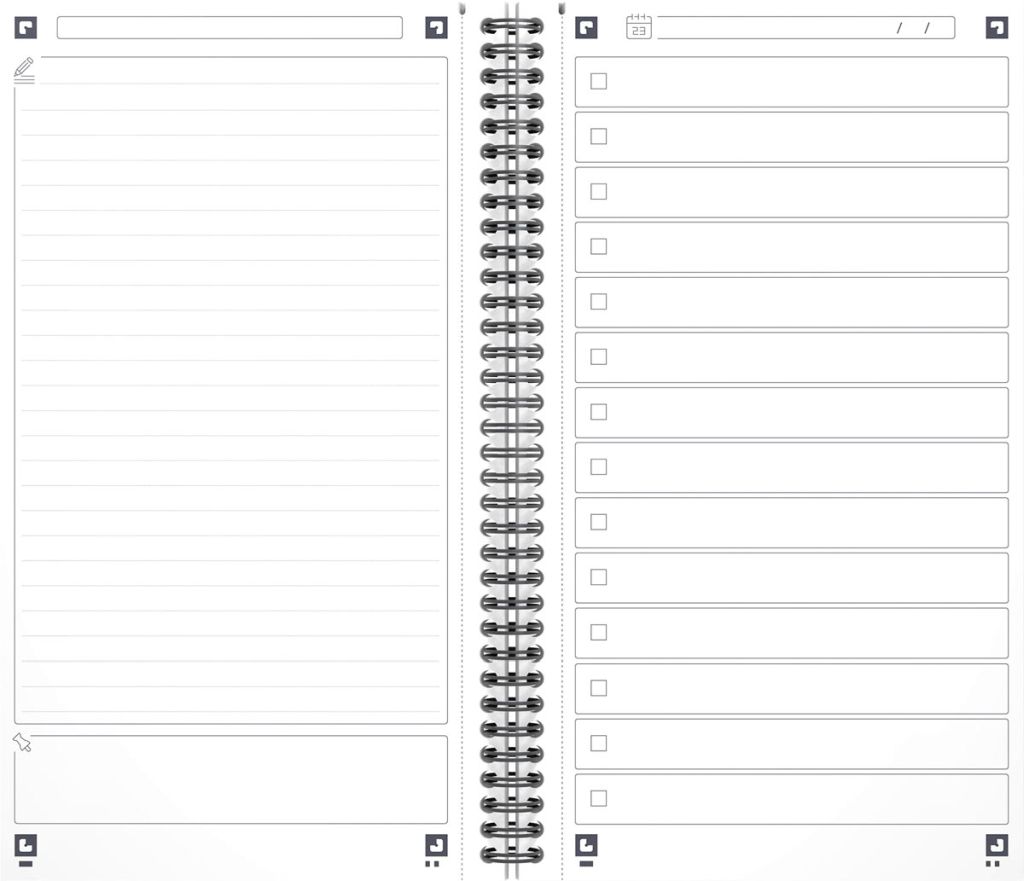- Elke pagina is aan beiden kanten bedrukt met een speciaal ontworpen raster om taken te beheren en aantekeningen te maken