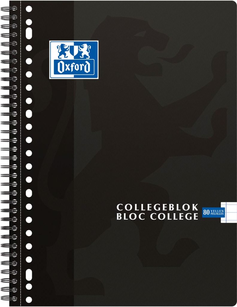 Oxford School collegeblok, ft A4+, 160 bladzijden, 23 gaats, kantlijn, gelijnd, zwart