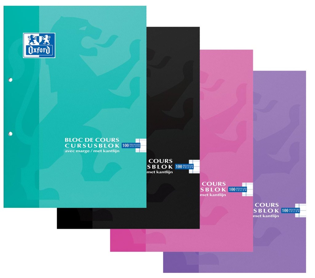 Oxford SCHOOL collegeblok, geassorteerde kleuren, ft A4, 100 vel, gelijnd