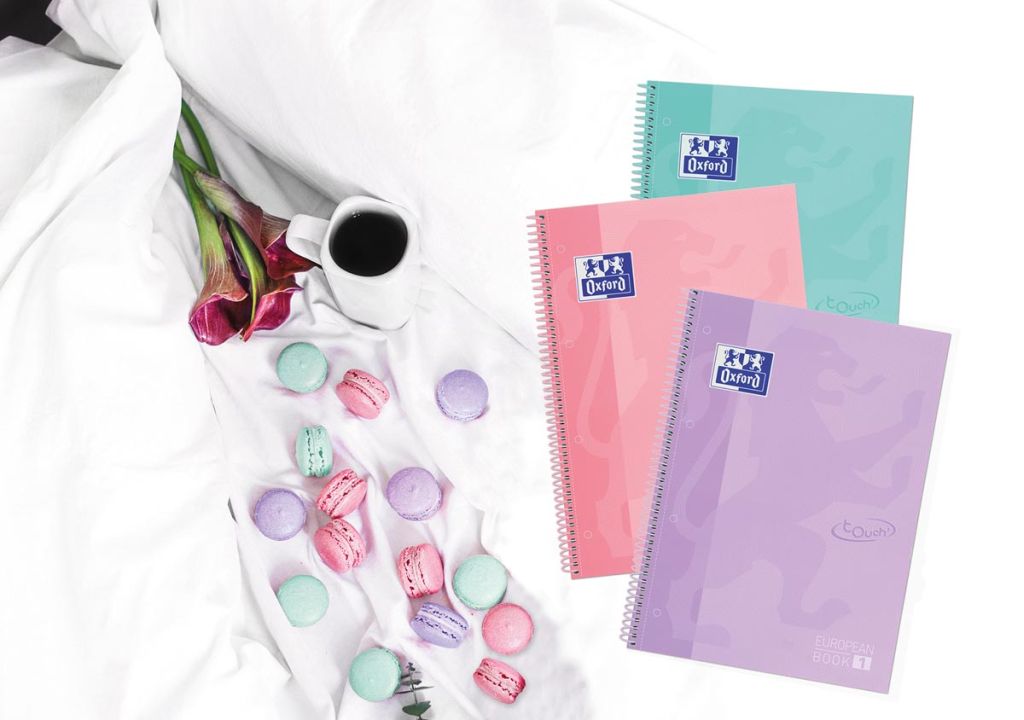 Oxford School Touch Europeanbook spiraalblok, ft A4+, 160 bladzijden, geruit 5 mm, pastel turquoise